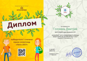 2017 г. - Удостоверение о повышении квалификации в Армавирском государственном педагогическом университете "Современные технологии обучения в практике учителя английского языка с учетом требования ФГОС ООО и СОО" (108 ч)